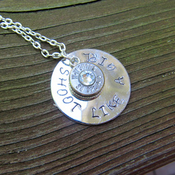Shoot Like a Girl Hand Stamped Bullet Necklace