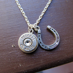 .45 Caliber Bullet Necklace With Horseshoe Charm