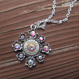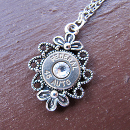 .45 Caliber Bullet Necklace With Floral Setting
