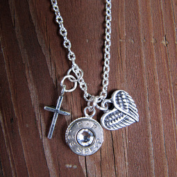 Women's .38 Bullet Necklace with Heart Angel Wing...