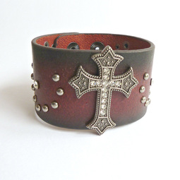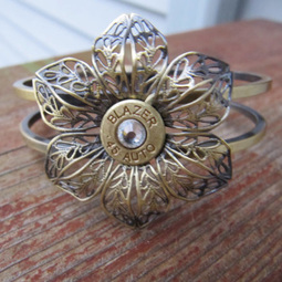 Antique Bronze Flower .45 Bullet Cuff With Swarovski...