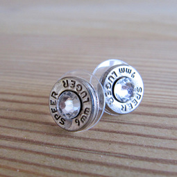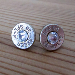 .38 Caliber Stud Earrings With Crystal Accents