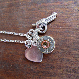 Bullet Necklace With Heart and Pistol Charm